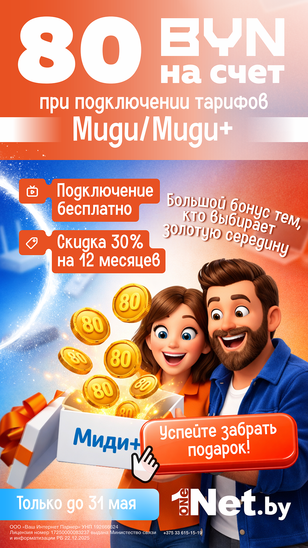 В апреле и мае подключайте любой тариф со скидкой 30% на 12 месяцев, а при выборе Миди/Миди+ получите 80 рублей на счёт в подарок.
